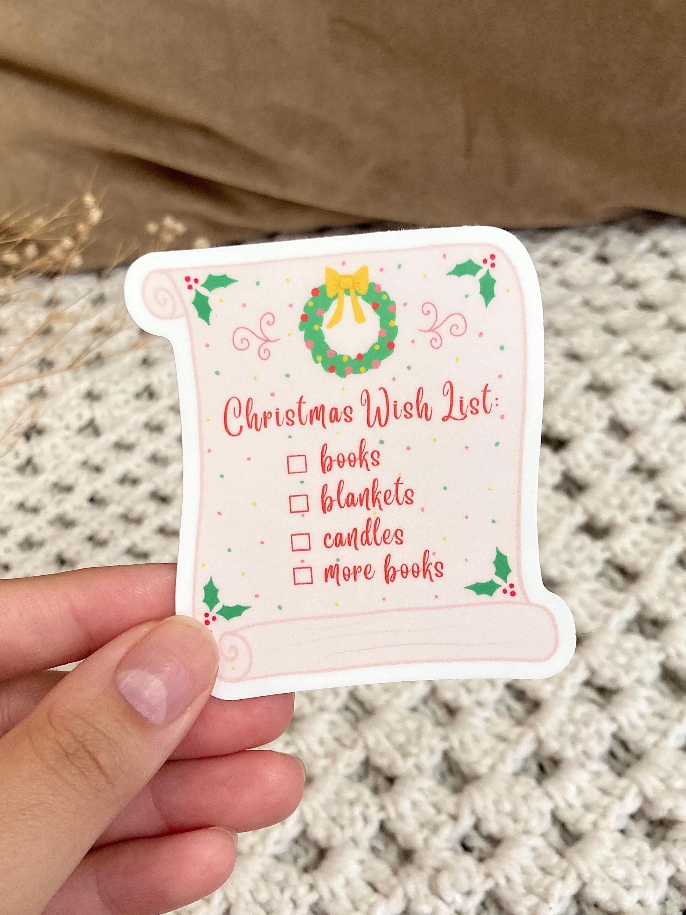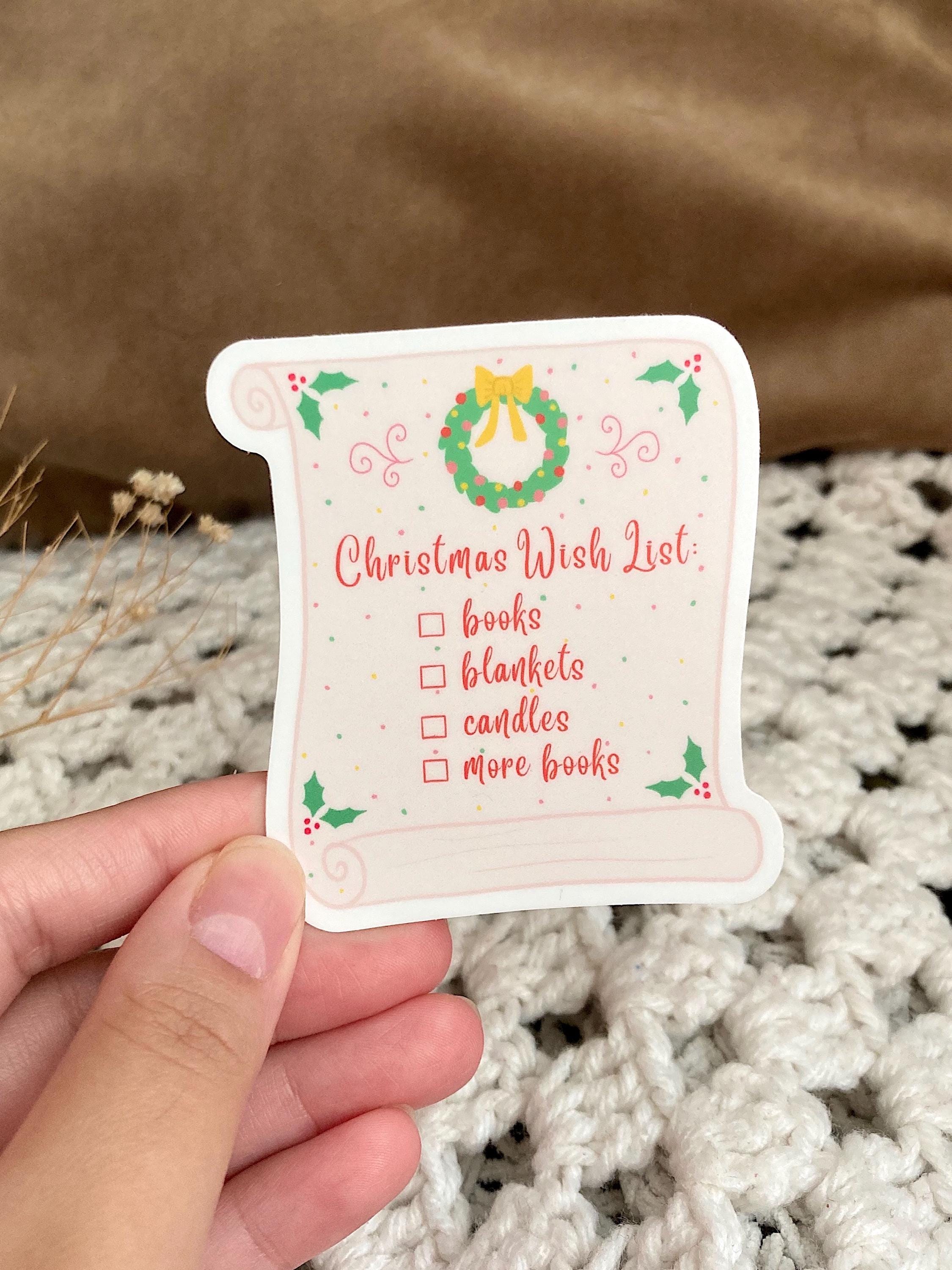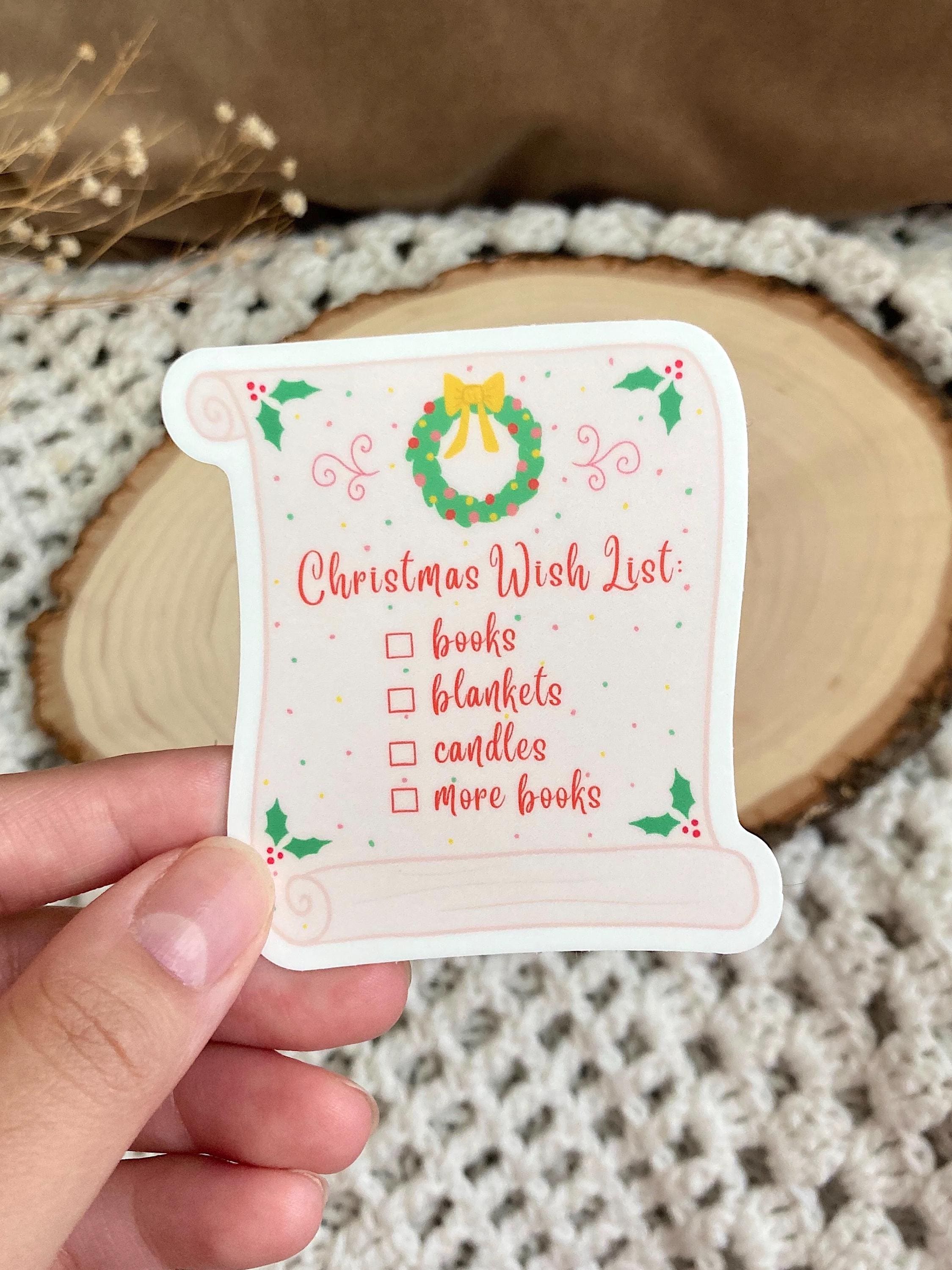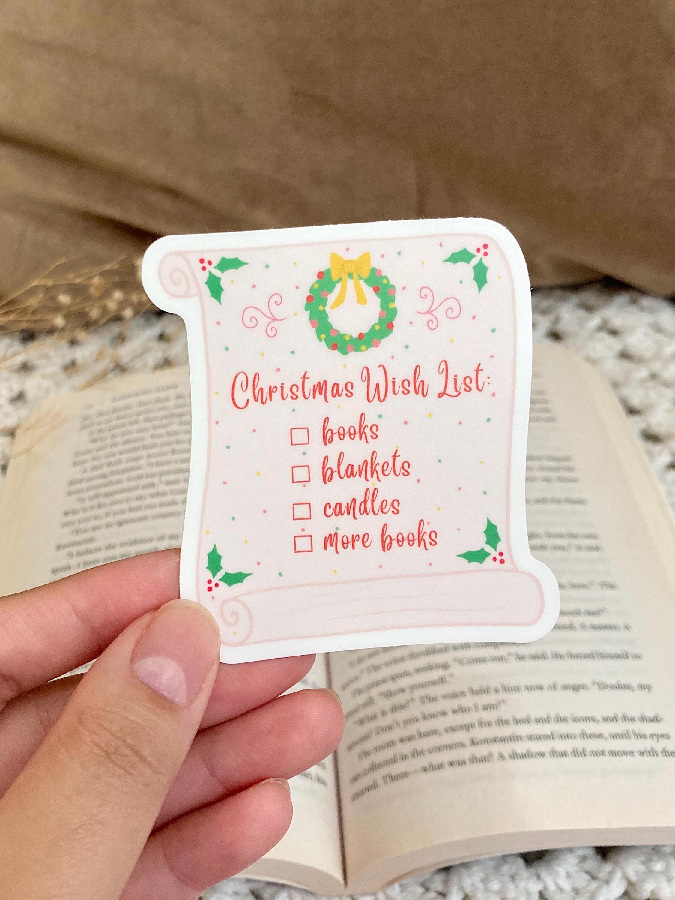 This Christmas wishlist sticker lists all the things that a bookworm wants!