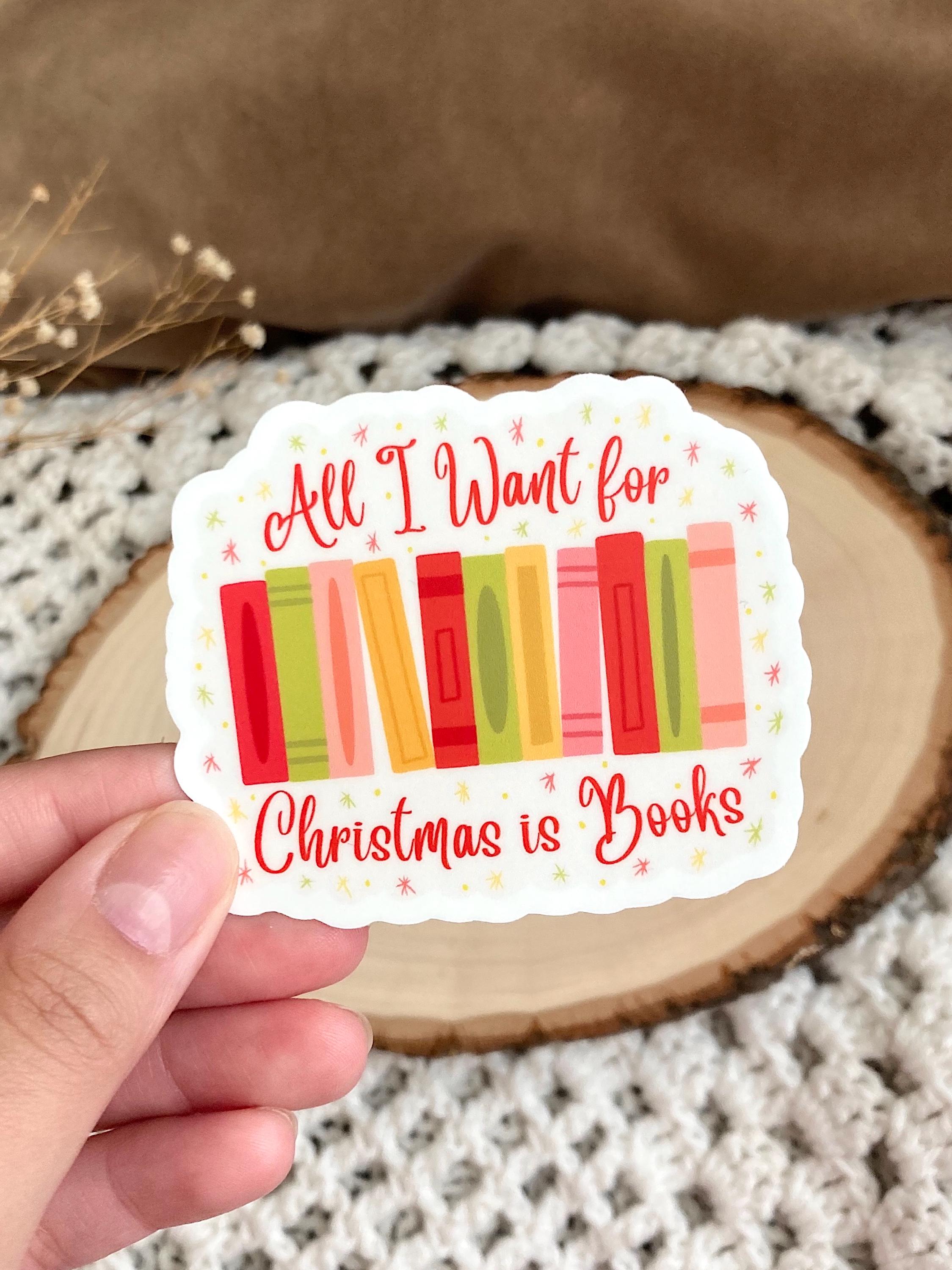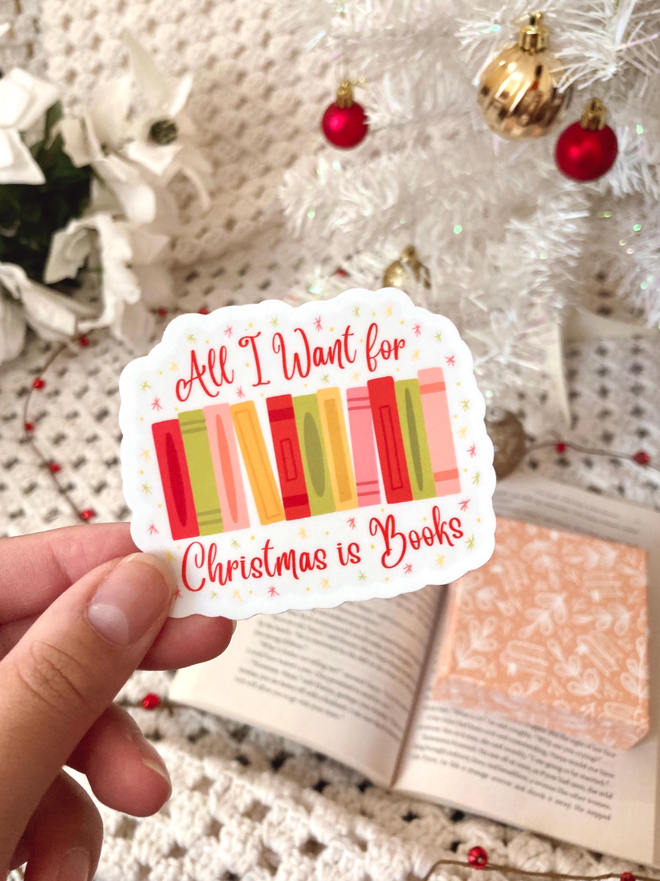 This Christmas sticker with the quote All I Want for Christmas is Books is perfect for readers to use for the holiday season!
