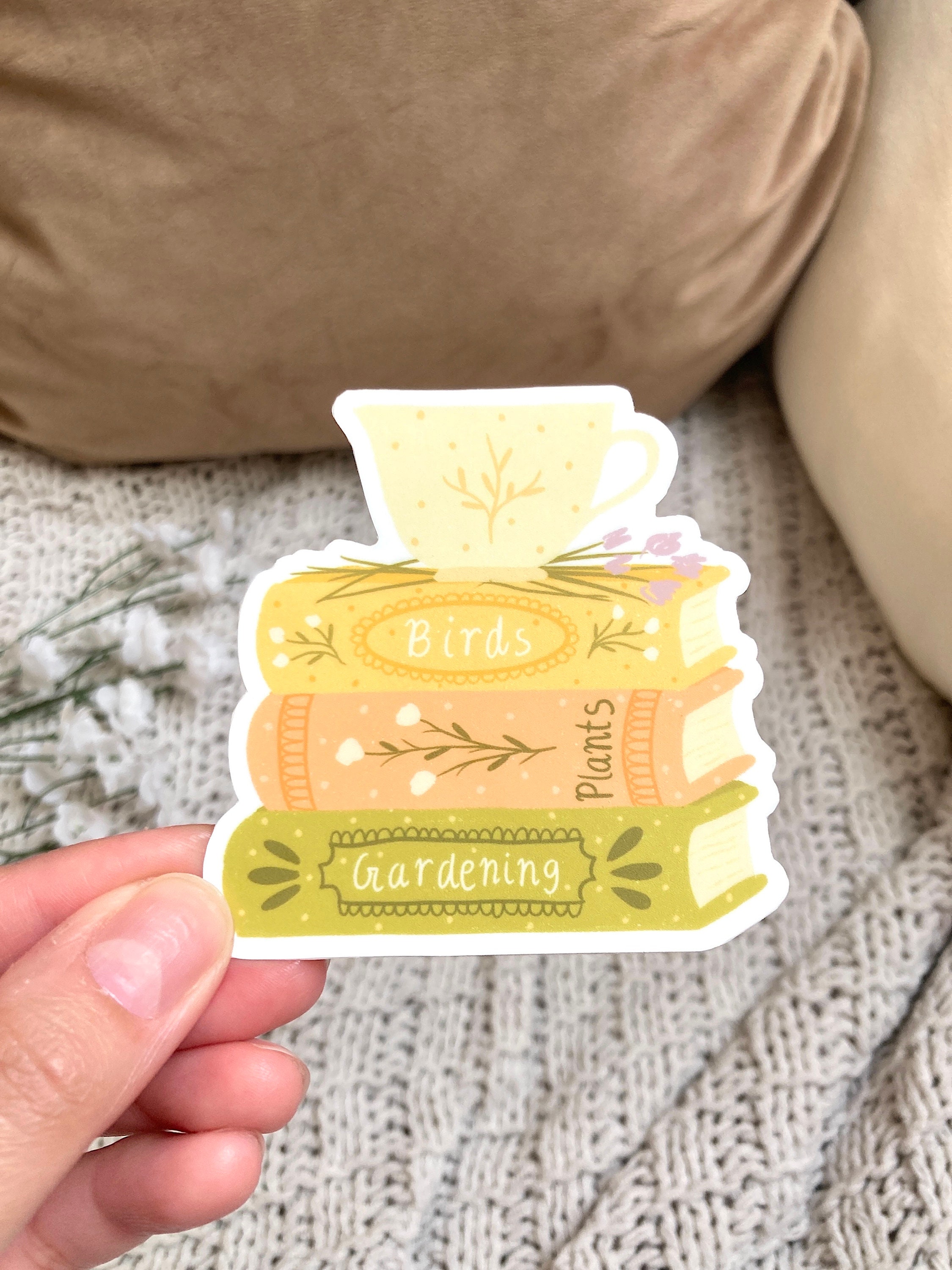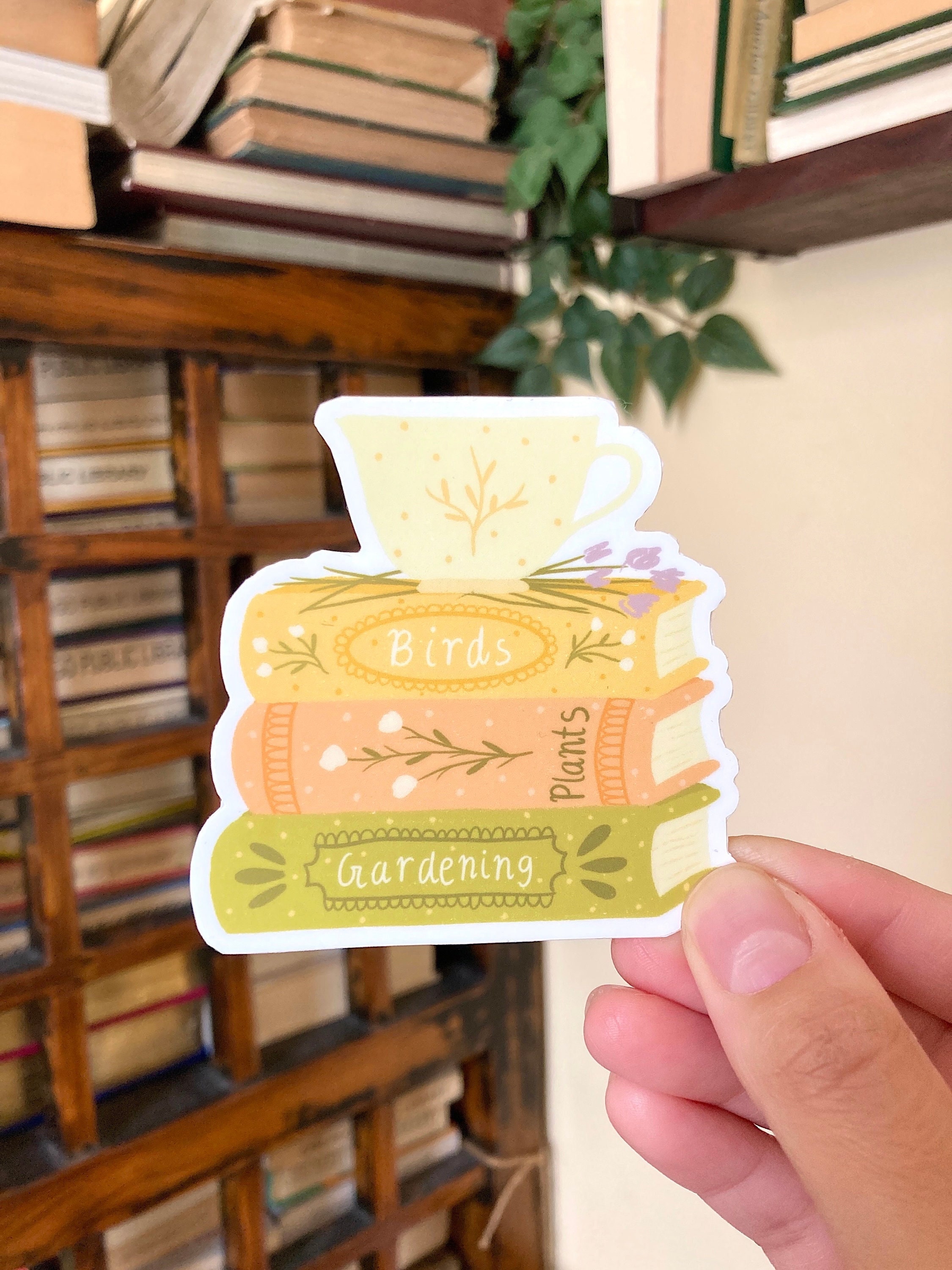 This stack of books sticker is perfect for cottagecore and gardening lovers! And for those who love plants and books.