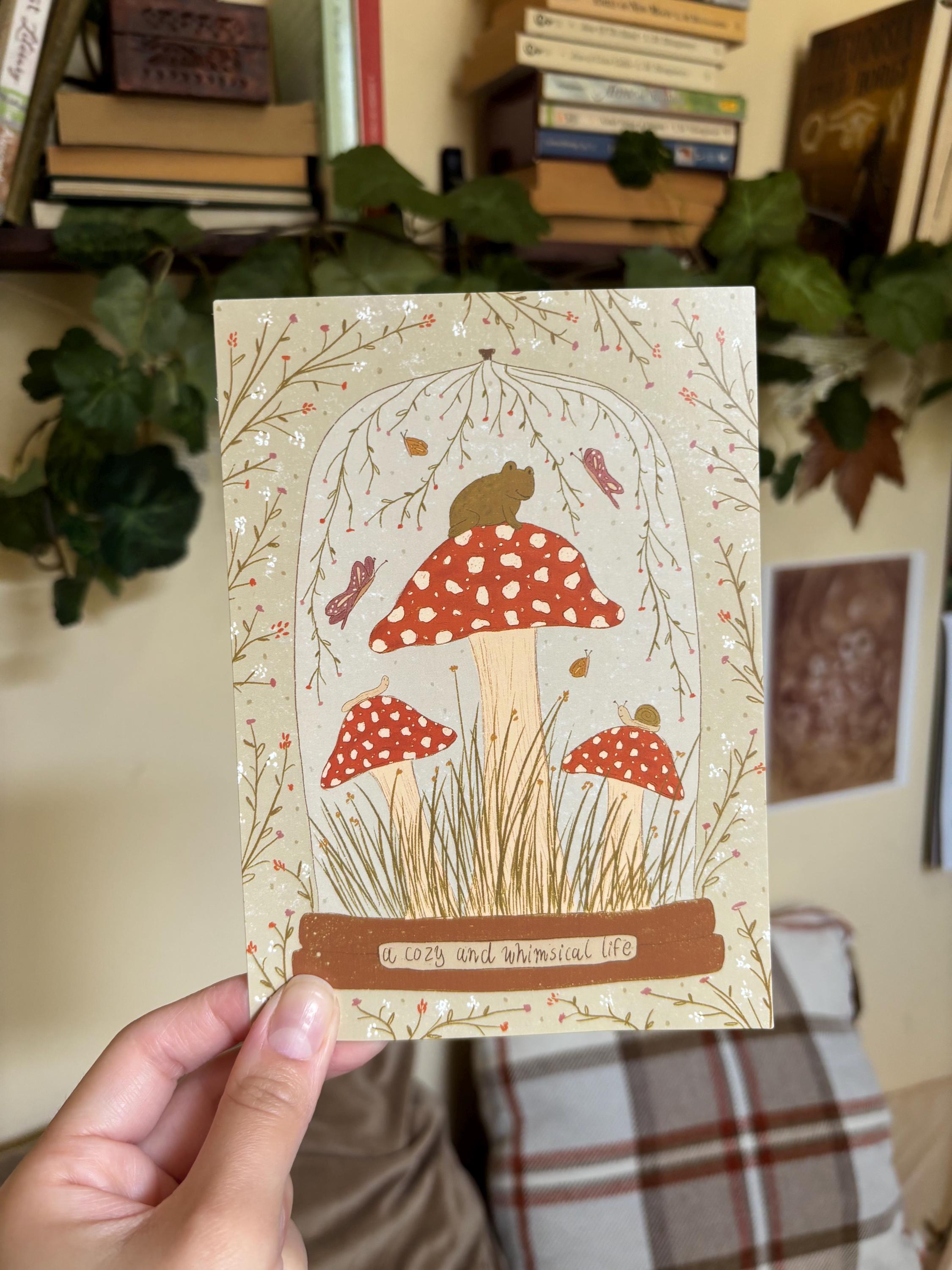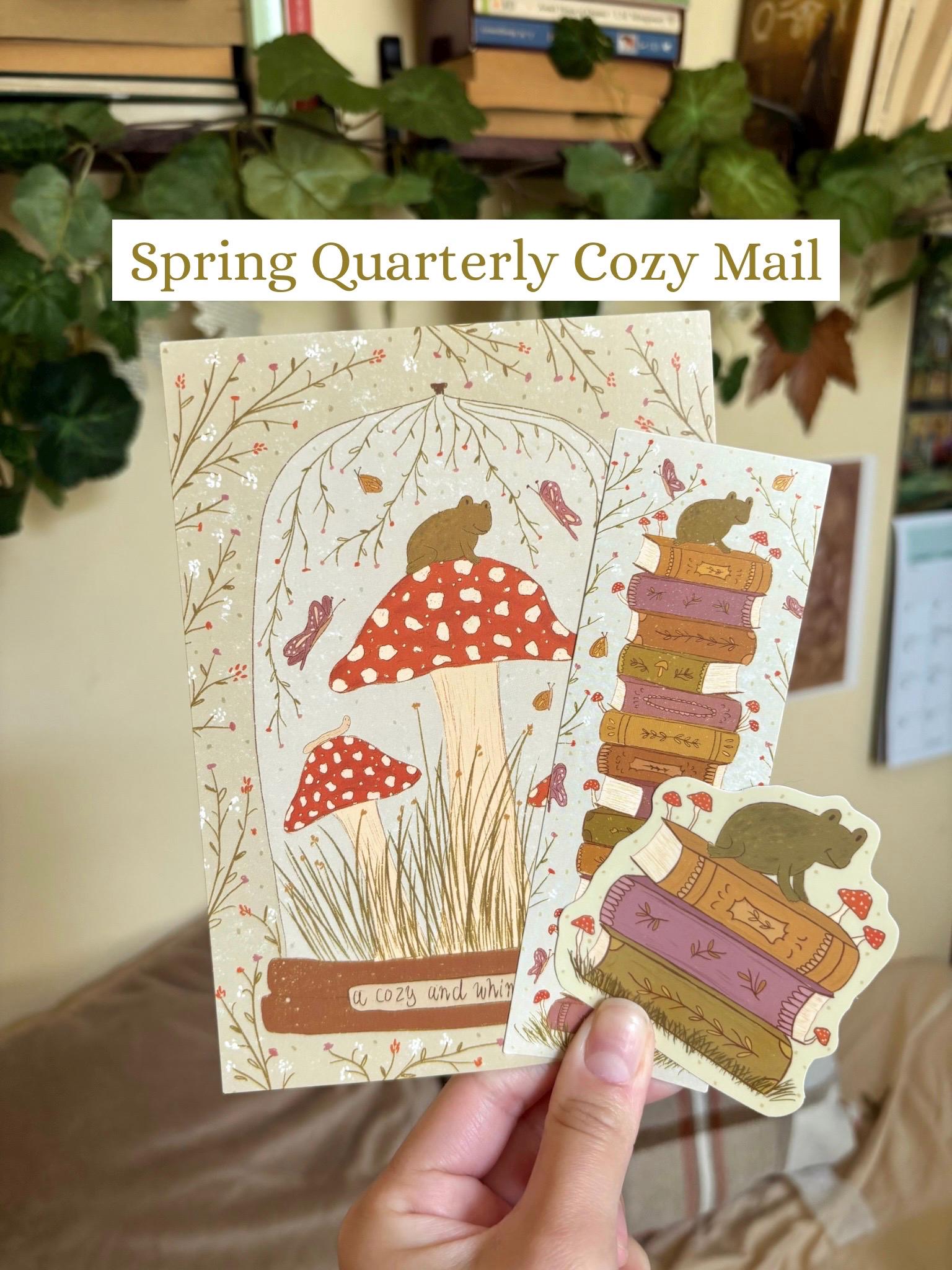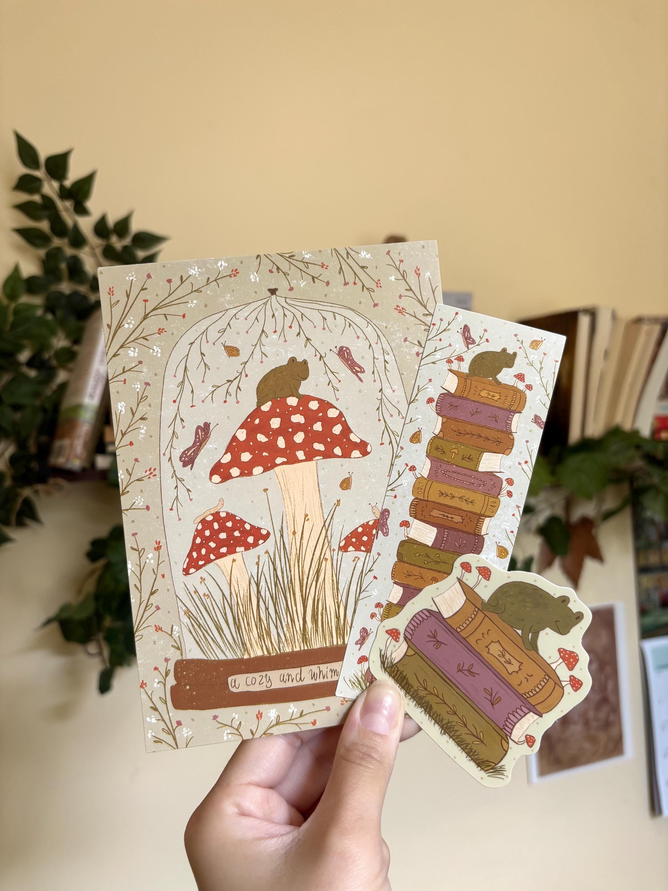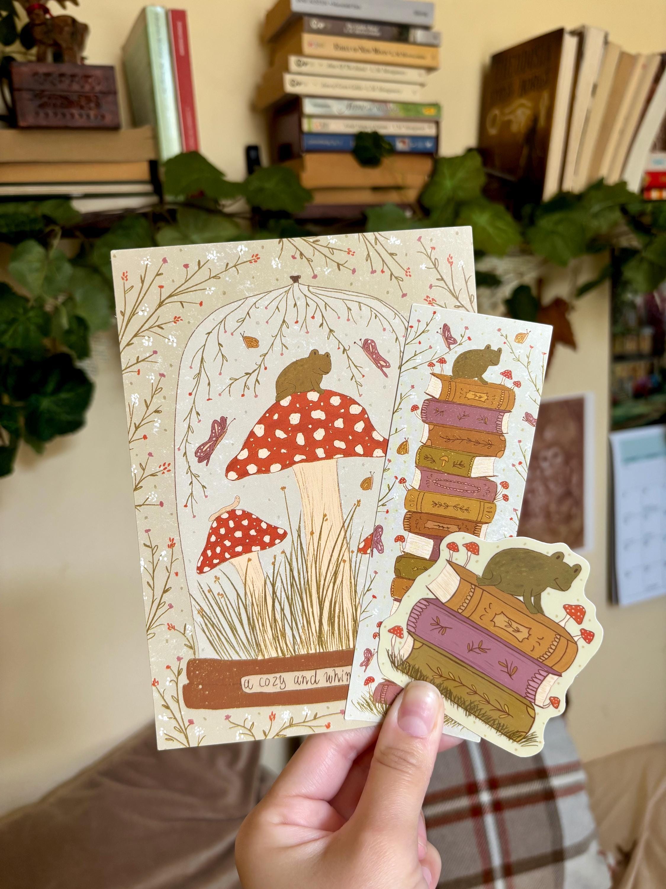 This cozy and whimsical snail mal is perfect for readers who love mushrooms, cottagecore, nature, and frogs/toads! You will get a frog sticker with books, a frog bookmark, and a frog print with mushrooms!